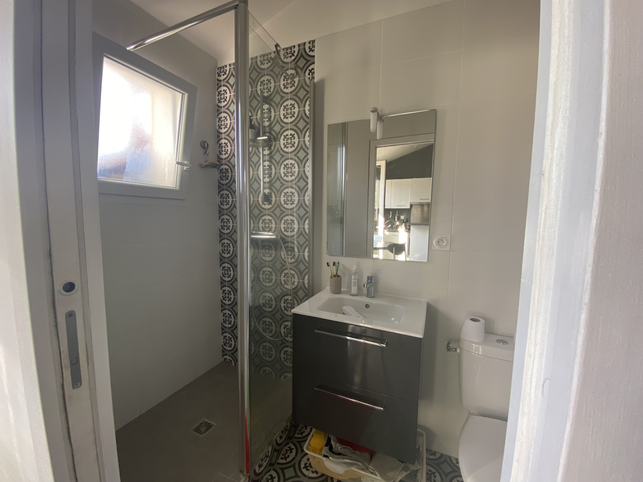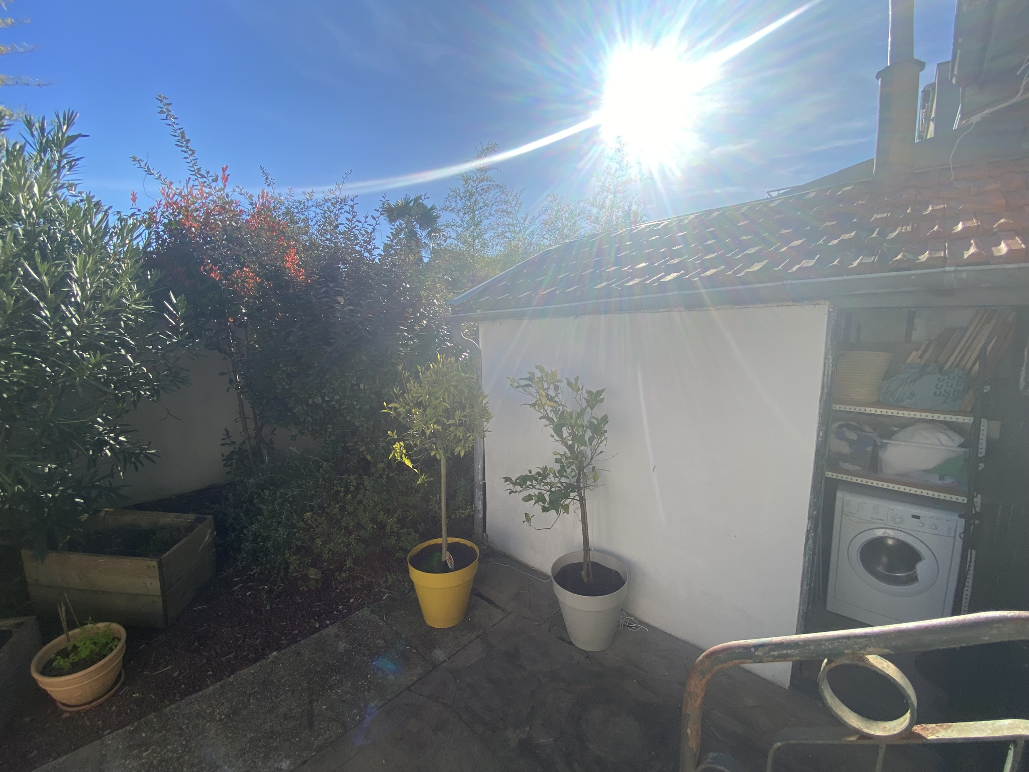 Ce bien dispose d'une petite cour sur l'arrière de la maison, un abri indépendant où se trouve la machine à laver et le ballon d'eau chaude.