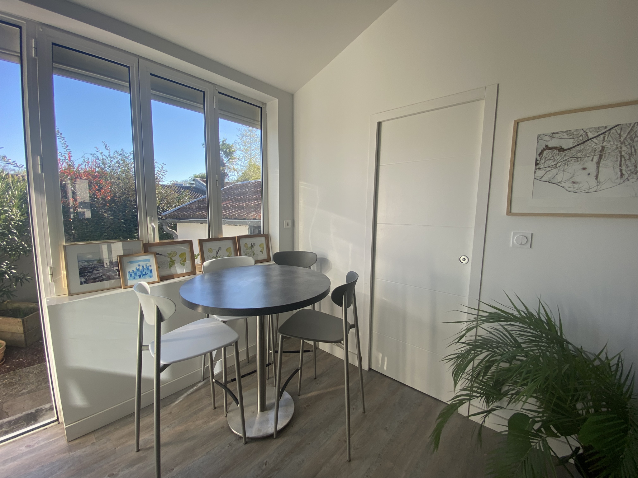 Mérignac (33700)A louer charmante maison de type T2 Bis comprenant une première pièce pouvant servir de bureau ou de chambre, une chambre avec dressing, un salon / séjour donnant sur une cuisine équipée et aménagée, une salle d'eau avec WC