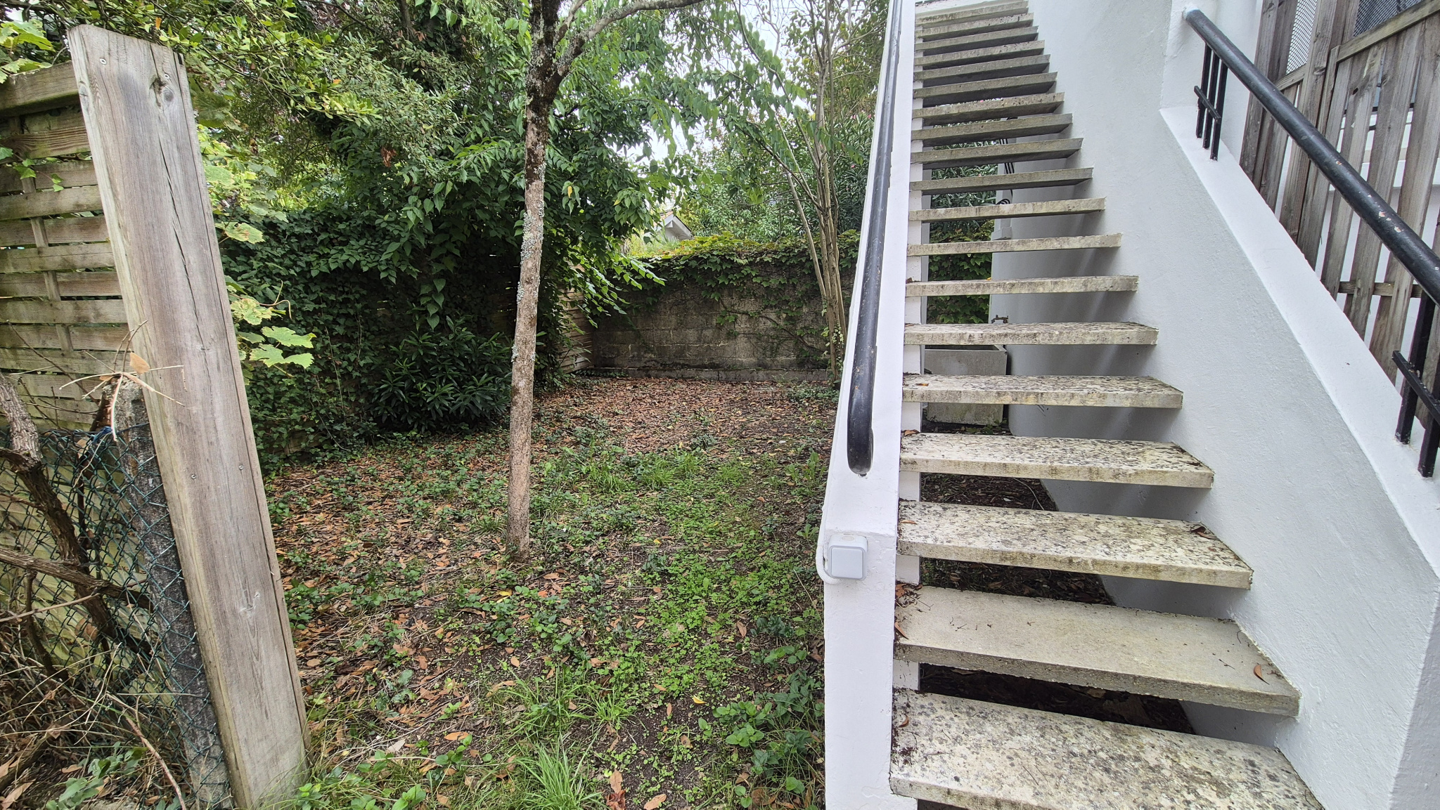 Cette maison atypique est composée au RDC d'une entrée, d'un salon/séjour, d'une cuisine, un dégagement menant à une chambre avec un coin salle d'eau et un WC. Cette chambre offre un accès au jardin arrière d'environ 48 m² par un couloir extérieur privatif.