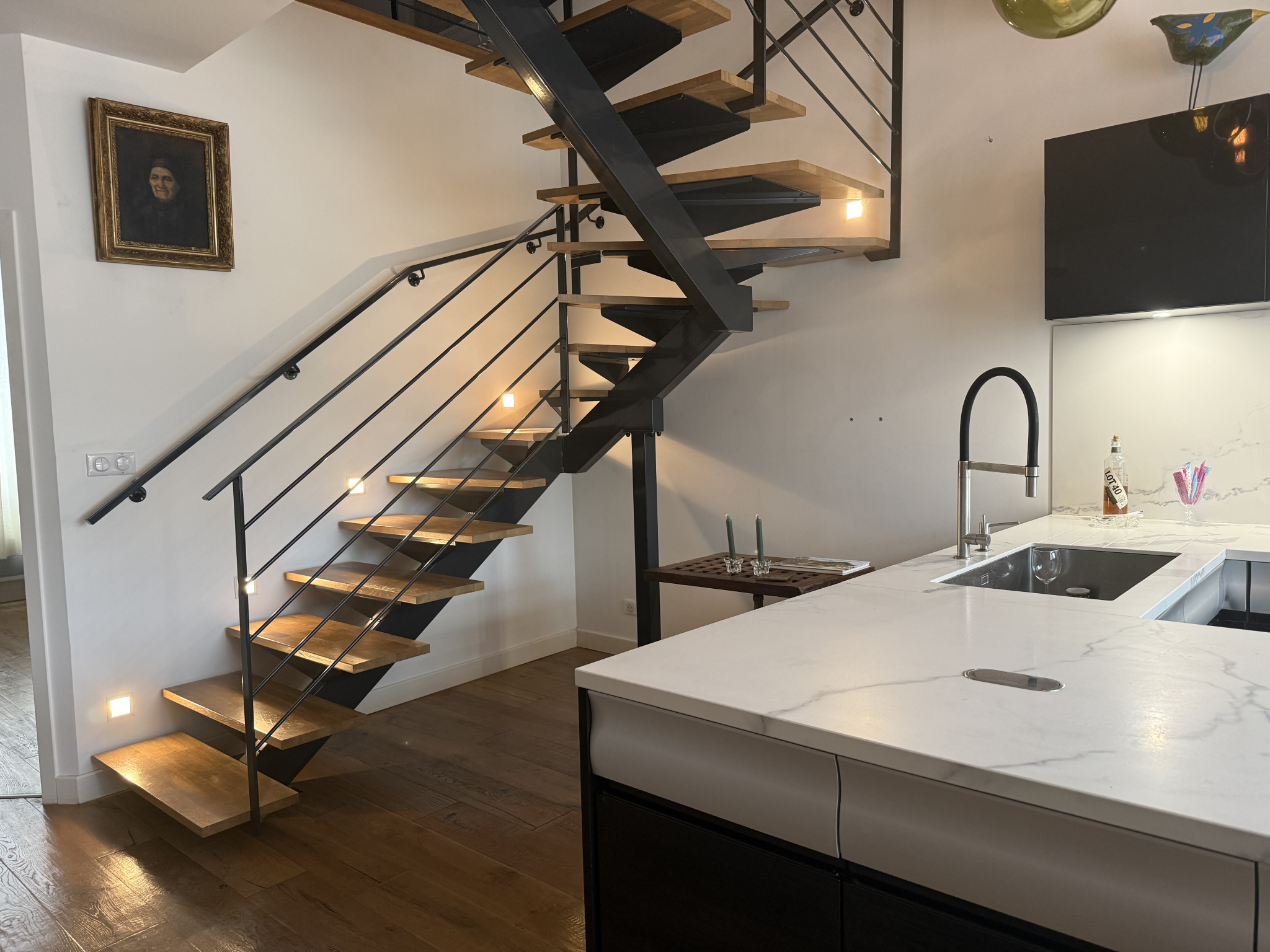 À l’étage, une agréable mezzanine ainsi qu’une salle d’eau viennent compléter l’espace, offrant un véritable confort au quotidien