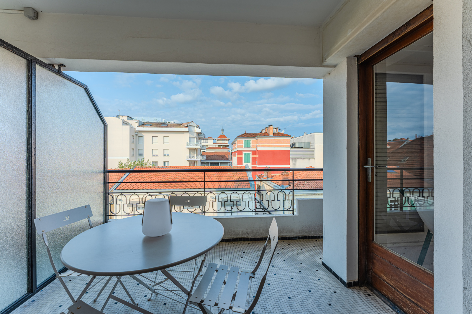 Coté Est, un petite chambre donne sur un balcon loggia.